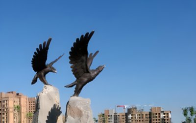 人立而起的老鷹銅雕塑