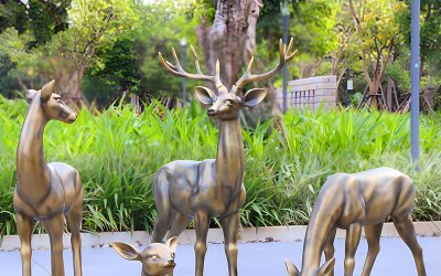純銅色玻璃鋼仿銅梅花鹿雕塑