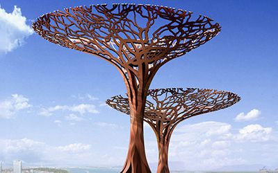 剪影雕塑,看的就是個輪廓!把你想做的東西(人、動物、樹啊啥的),簡化成影子形狀。材料選擇多:不銹鋼、耐候鋼(喜歡生銹那種質感)、玻璃鋼、鍍鋅板、鐵板都成。最后還得靠噴漆,給它們打扮上顏色。